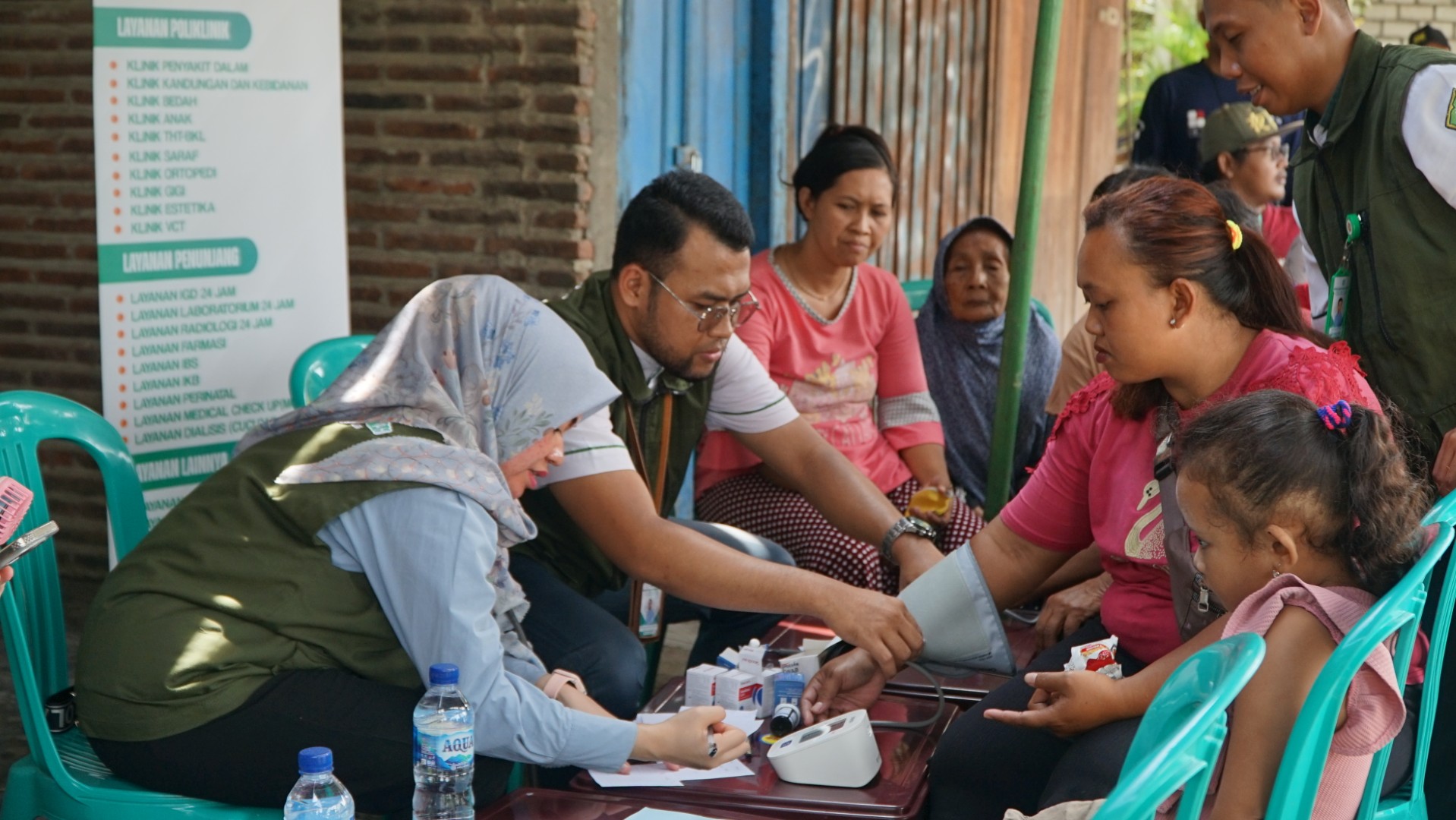 Pelayanan kesehatan gratis menjadi inti dari kegiatan bakti sosial ini. Sejak pagi, warga mulai berdatangan dan mengantre dengan tertib untuk mendapatkan layanan pemeriksaan kesehatan. Suasana di lokasi tampak hidup namun tetap teratur. Para tenaga medis RSA bekerja dengan telaten, dibantu relawan dan tenaga kesehatan setempat. Senyum ramah, sapaan santun, dan komunikasi yang hangat mewarnai interaksi antara tim medis dan masyarakat.