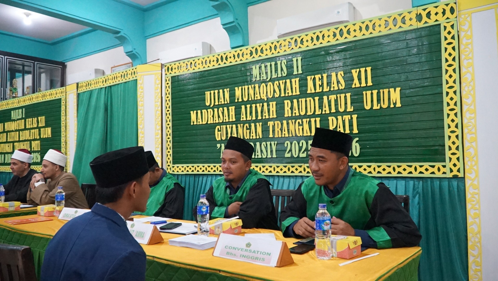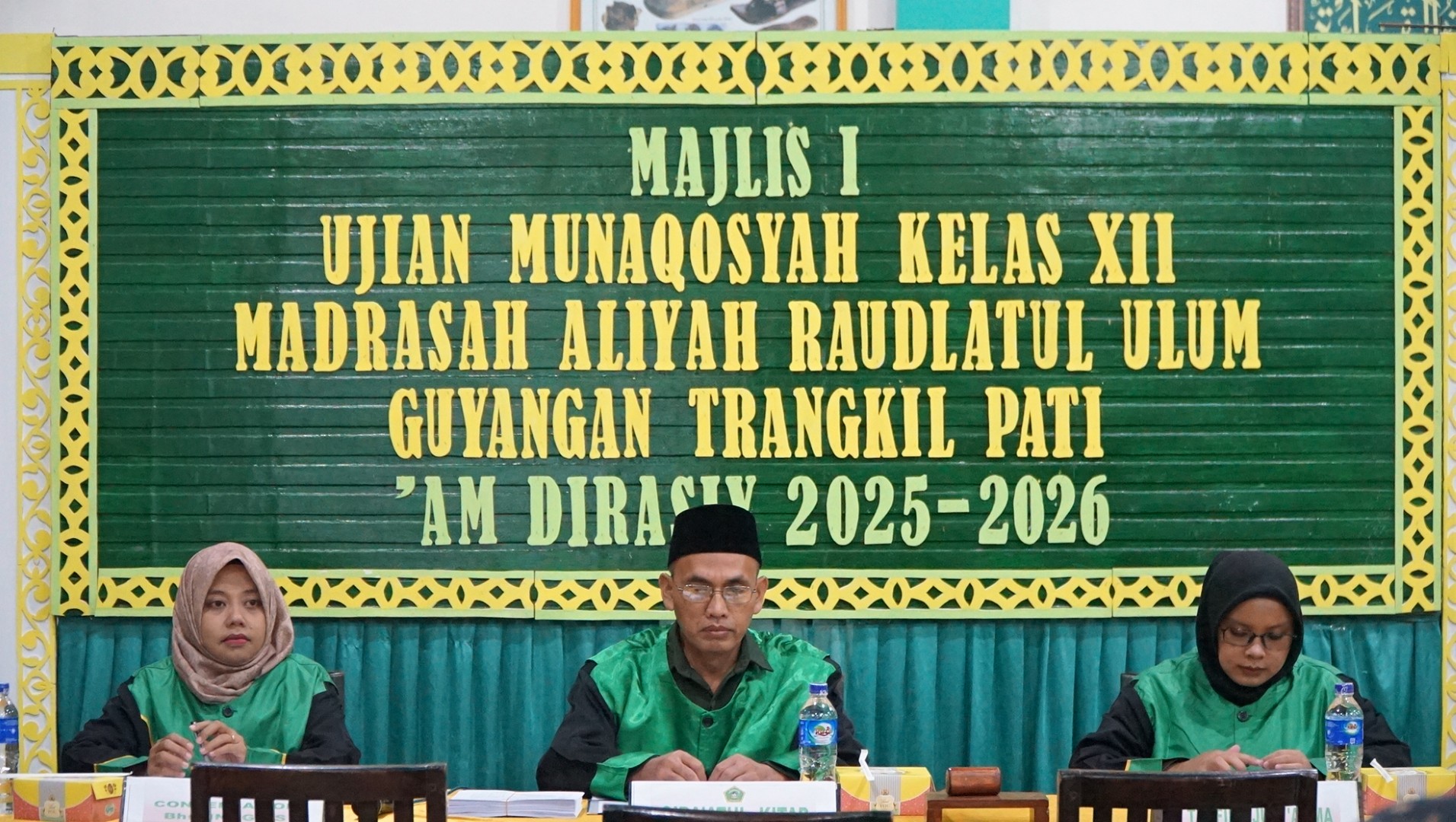 Guyangan - Tidak semua sekolah menjadikan ujian lisan sebagai syarat kelulusan. Di Madrasah Aliyah Raudlatul Ulum Guyangan, ujian munaqosyah justru menjadi tahapan krusial yang harus dilalui santri kelas XII sebelum dinyatakan menyelesaikan pendidikan. Sejak 5 Januari 2026, santri mengikuti ujian munaqosyah sebagai bentuk evaluasi akhir yang tidak hanya menguji penguasaan materi, tetapi juga kesiapan mental, kedalaman pemahaman, serta kemampuan komunikasi yang selama ini ditempa di madrasah dan pesantren. Dalam pelaksanaannya, ujian ini terbagi menjadi empat subtes utama. Setiap subtes memiliki karakter dan tantangan tersendiri, sehingga santri dituntut untuk fokus, teliti, serta mampu mengaplikasikan ilmu secara sistematis dan bertanggung jawab.